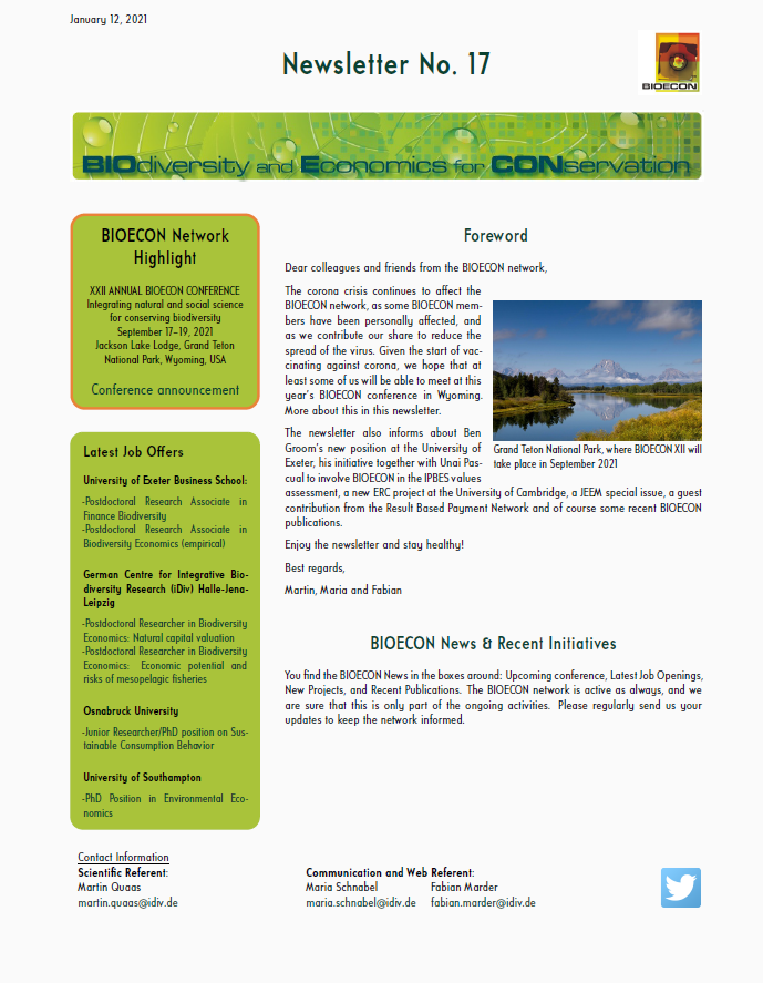 - New ERC project FIDELIO: Forecasting Social Impacts of Biodiversity Conservation Policies in Europe